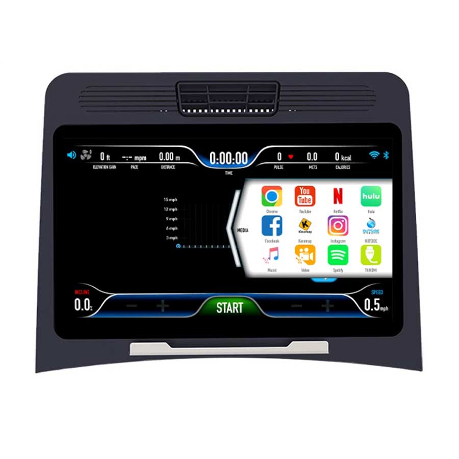 Choose between our 16″ and 10″ Smart Touch Consoles or our 9” Black Mask LCD Console. All three consoles are equipped with our GEMCONNECT Bluetooth / ANT+ Technology. This allows applications to access, sync, and process data from the treadmill (speed, time, distance, heart rate, etc). Each app uses this data to create an entertaining user experience and can track, save, and share each workout to third party apps. Use your smartphone, tablet, or cast to a TV! Additional features include a USB port to keep your phone charged, audio jack, HDMI input, and 3-speed cooling fan for those intense training sessions.