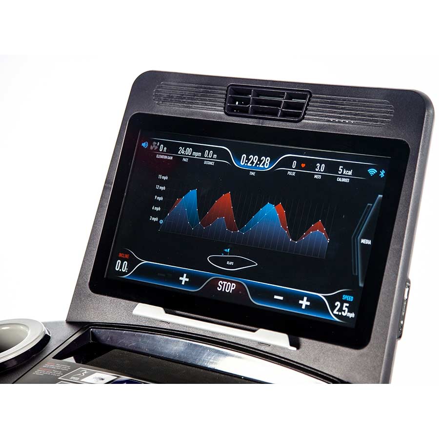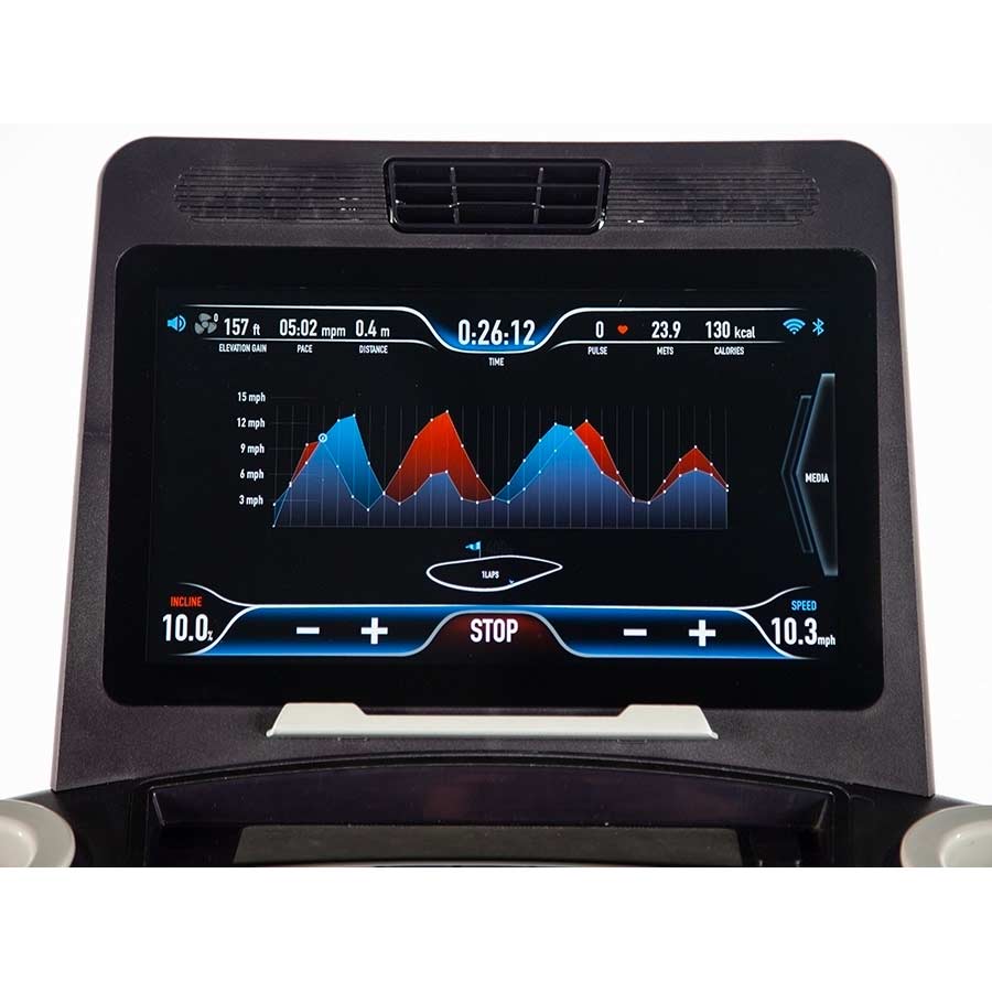 The lower console is equipped with quick keys for speed and incline. Both the speed and incline set have 2 custom settings each. Set your preferred custom speeds with .1mph increments and custom incline at 1% increments. Create your own manual interval training or simply set your perfect walking / running speeds.
