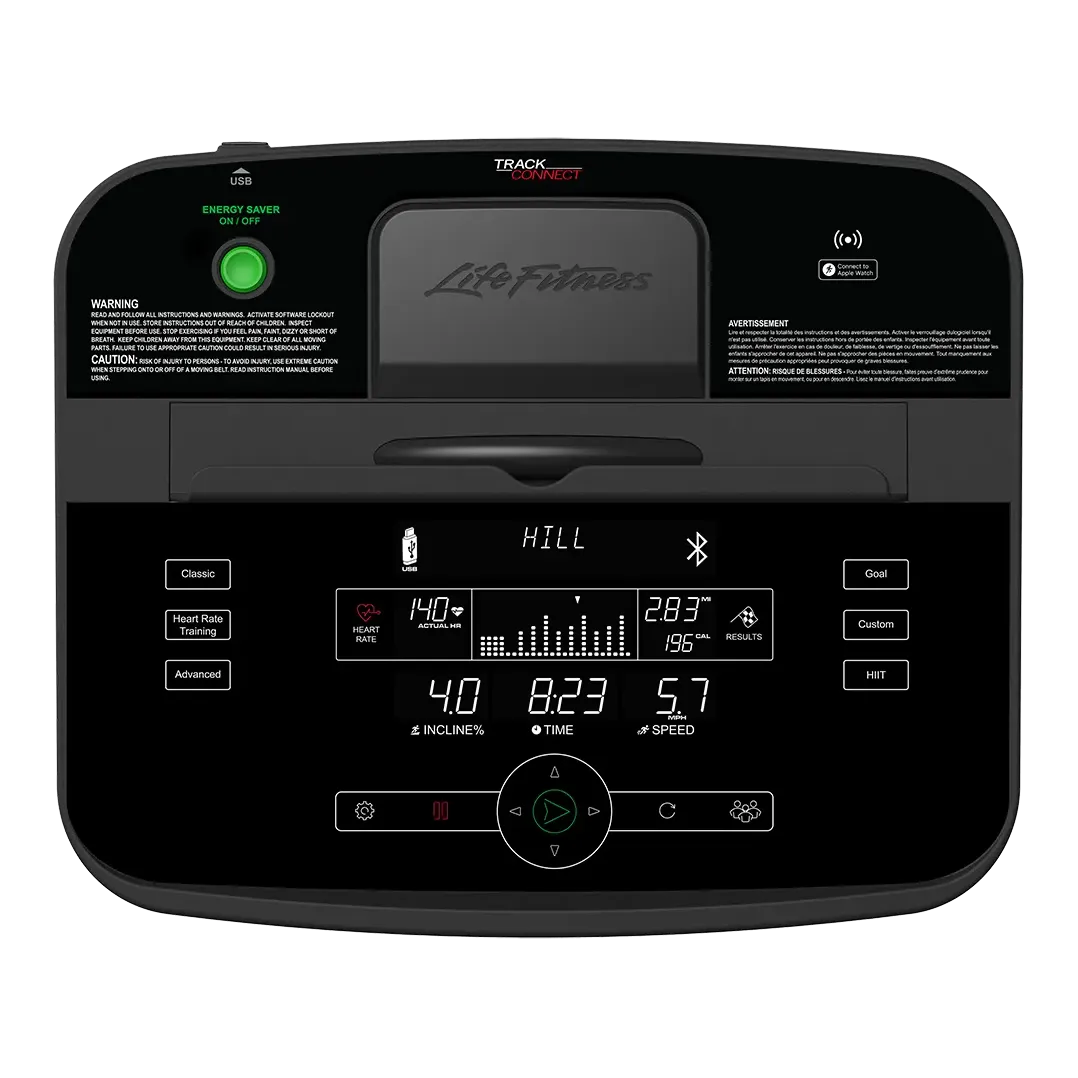 The lower half of the console offers convenient workout setup and in-workout control. It features capacitive touch keys that illuminate when usable and dim when not in use.