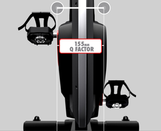 Q Factor, the distance between an exerciser’s feet when they sit on the bike and pedal, of 155mm makes the IC6 comfortable and feel more like a real road bike. The result is added comfort and pedal stroke efficiency.