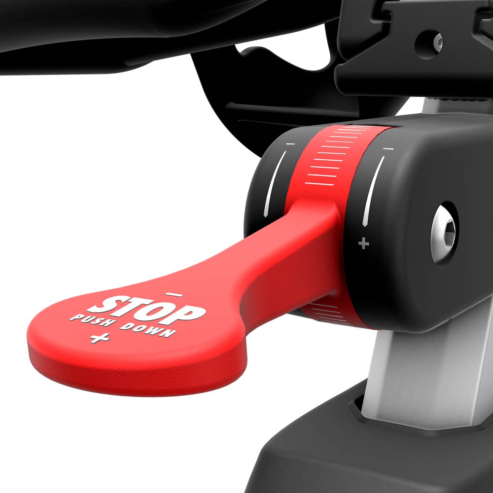 Four-way adjustments (saddle height, saddle fore/aft, handlebar height, handlebar fore/aft) ensure a finely-tuned fit for all riders. Handlebar integrated user-assist technology makes adjustments smooth and easy.