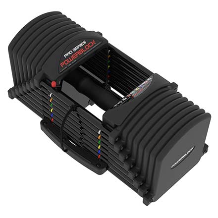 - The Pro 50 Set has a weight range of 5-50lbs per hand, gives every 2.5 lb increment, and replaces 20 pairs of dumbbells in the space of 1 pair