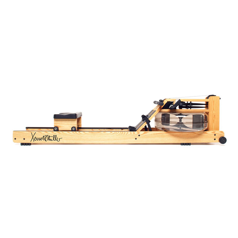 The WaterRower Xeno Muller Signature Series with S4 monitor Rowing Machine uses our standard Natural model, crafted in solid Ash wood with a honey oak stain. The rower features a wider handle (17″), lower foot rests, WaterRower decals on the rails with a signature vinyl on each rail.